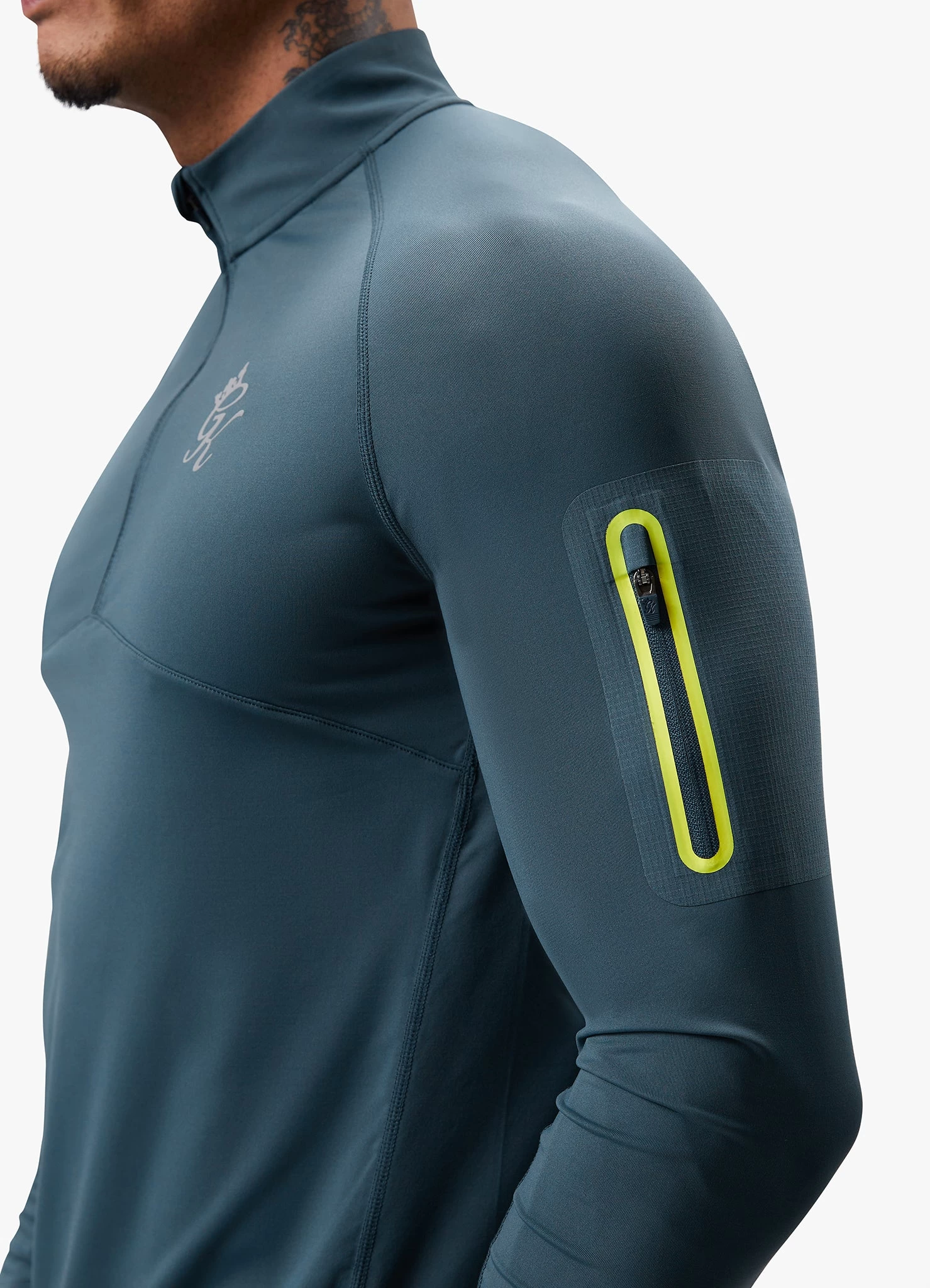 - Contrast flex print on sleeve