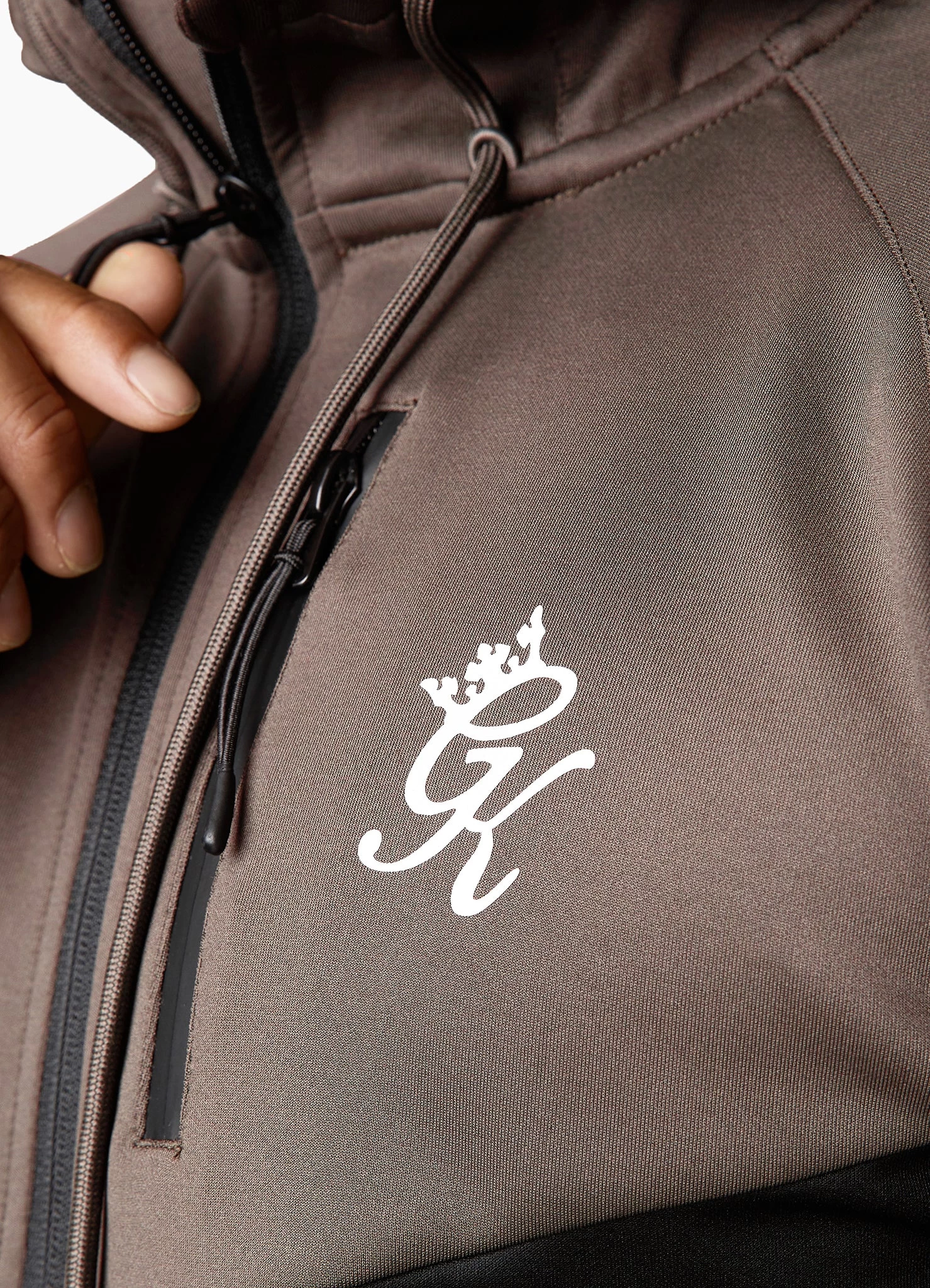 - Drawstring hood with branded drawcords